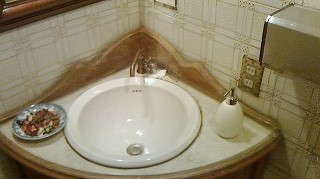 オシャレな手洗いボウルはカウンターと壁面の