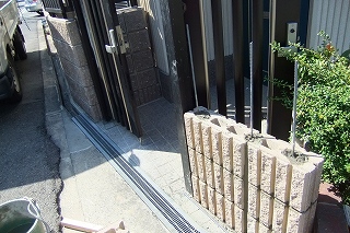 工事中です 門扉と化粧ブロックを使うデザインに